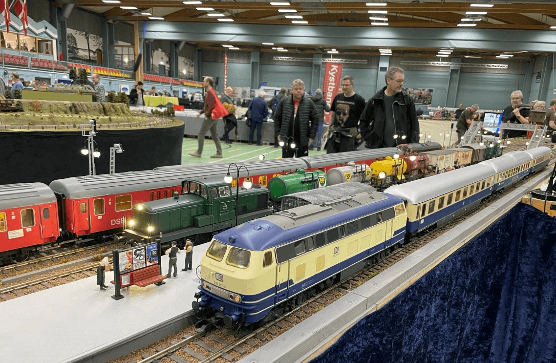 Oplev realistisk jernbanedrift i stor skala. Kæmpe banegård med by og landskab med liv, mennesker, biler og sporvogne. Den lille lokalbane med handel og remise og meget mere. Stor samling af danske og tyske lokomotiver og vogne.